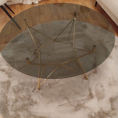 Säljer det här fina soffbordet i gott skick, guldfärgade ben och glasskiva ovanpå.