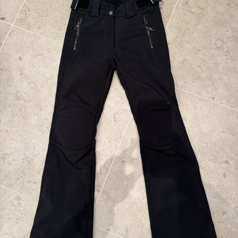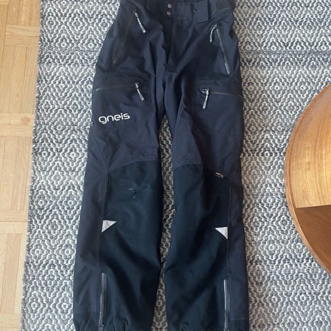 Väldigt bra skalbyxa av Goretex med tunt foder av Primaloft. Bra passform och många bra funktioner. Avtagbara lättjusterade hängslen med snölås, justerbar midja och öppningsbara bensidor. Baktill finns möjlighet att korta byxbenen för att undvika slitage om de är lite för långa. En tydlig fläck och någon färgskiftning. En kläpp till en ficka saknas.