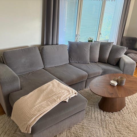 Soffa Nevada med schäslong vänster och divan höger, använd i fritidshuset ett drygt år. Mycket fräsch, står i rökfritt hem och inga husdjur. Man sitter lätt 7-8 personer i den så den är perfekt för den stora familjen eller på företaget.