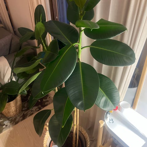 Fin planta (FICUS ELASTICA ROBUSTA) som växer men behöver lite kärlek. Snygg stor kruka ingår. Hela är ca 150 cm hög, kruka diam 36 cm höjd 33 cm.