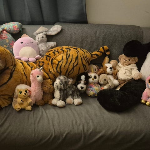 Ty mjukisdjur set bestående av flera olika djurfigurer i varierande storlekar och färger. Setet inkluderar bland annat en panda med unge, en enhörning, en drake, och hundar. Leksakerna är mjuka och lämpade för barn.