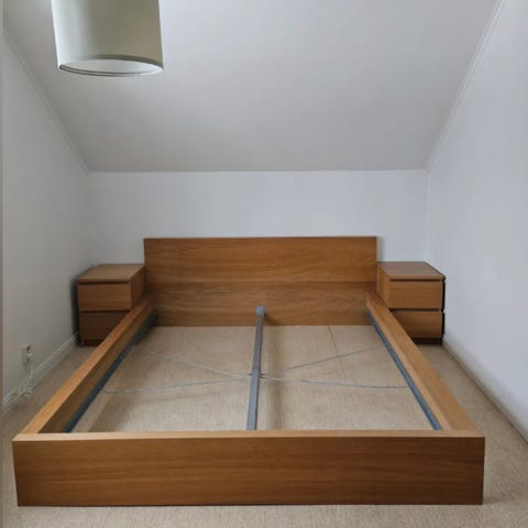 IKEA Stavanger resårmadrass 105 cm med gavel och sängbord Malm IKEA.