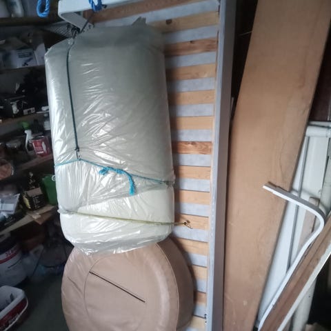 Säng 90x200 skänkes – resårmadrass + bäddmadrass