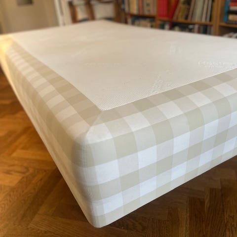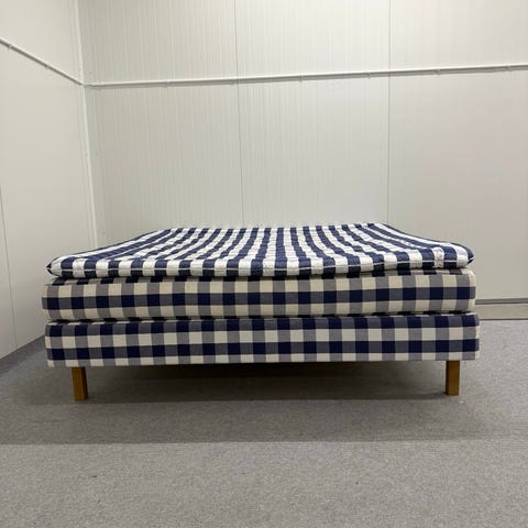 Vintage hästens bädmadrass klassiskt blåvitt mönster.