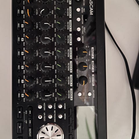 Zoom R8 ljudinspelare och mixer med flera spår och inbyggda kontroller för ljudjustering. Utrustad med reglage för volym och mixning samt en display för inställningar och övervakning. Användbar för ljudinspelning och musikproduktion. Fotkontroll FS01 medföljer.
