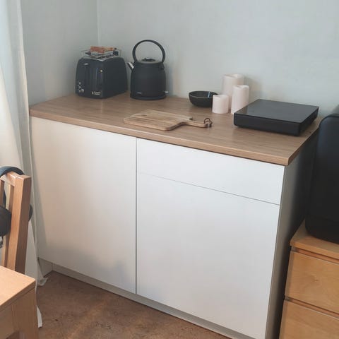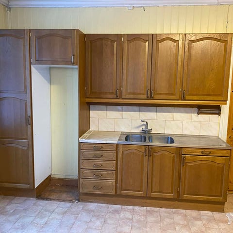 Äldre IKEA-kök med stomme Faktum + luckor, disko och blandare ingår, övriga vitvaror ingår ej. Bänkskiva massiv ek som är i behov av omvårdnad.