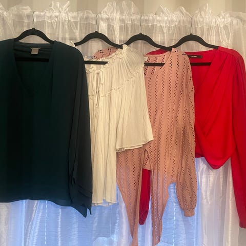 Säljer 2 blusar den jättefina mönstrade blusen kommer från Kappahl xlnt och är i 100 procent bomull. Den jättefin vita öppnade blus/ kavaj är ifrån Temu och är i 100 procent polyester. Dom är i nyskick mvh Marita mikkola