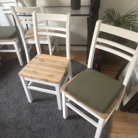 Säljer 2 st fina stolar från ILVA med ben i trä och en grå tygsits. Nypris 2000kr/stol.