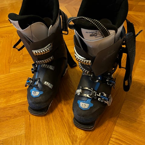 Vi säljer alpina pjäxor i märket Salomon. De är 24 cm långa