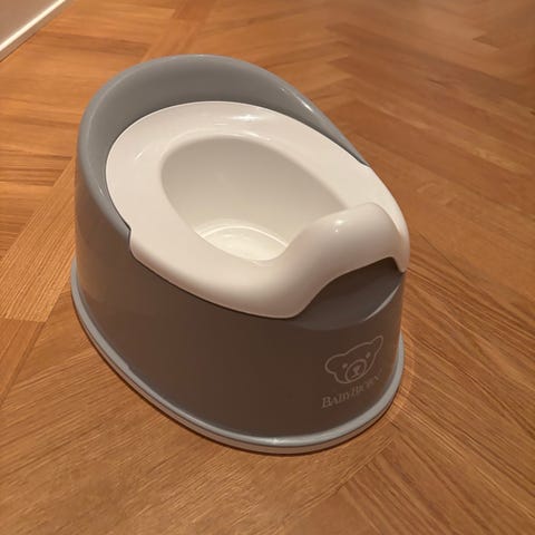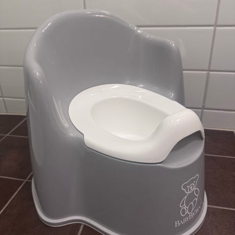 BabyBjörn Pottstol Grågrön/Vit är en bekväm potta med högt ryggstöd och sköna armstöd i grön färg. Pottstolen har mjuka former och en list på undersidan som gör att pottan står stadigt på golvet. Höjden gör det lätt för barnet att sätta sig ner och ställa sig upp själv. Löstagbar innerpotta som är enkel att tömma och rengöra.
