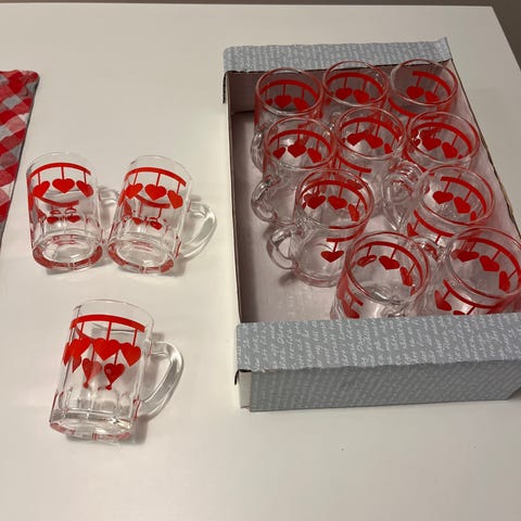 Nio stycken glas med varierande storlek mellan ca 11 till 12 cm. 200 kronor för alla tillsammans. Nagg på foten på tre av glasen se bild.