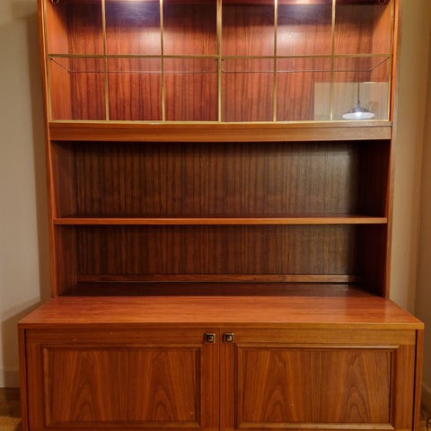 Bokhylla / Vitrinskåp i mörkt trä - i gott skick!