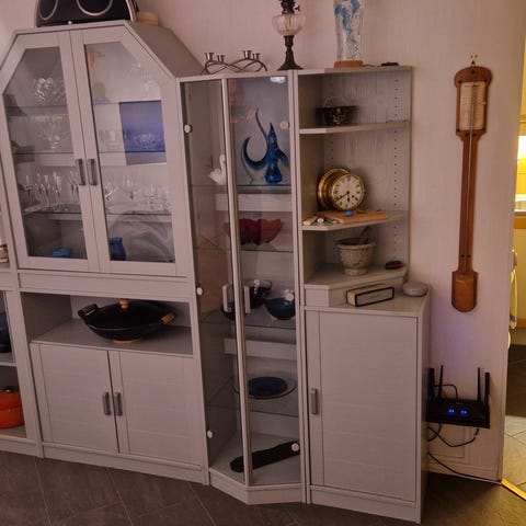 Vitrinskåp i mörkt trä. Underbart hantverk och vacker inredningsmöbel.