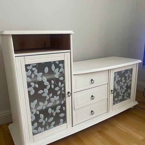 IKEA vit bänk med en hylla under sittdelen. Tillverkad i trämaterial. Passar som tv bänk eller enkel förvaring