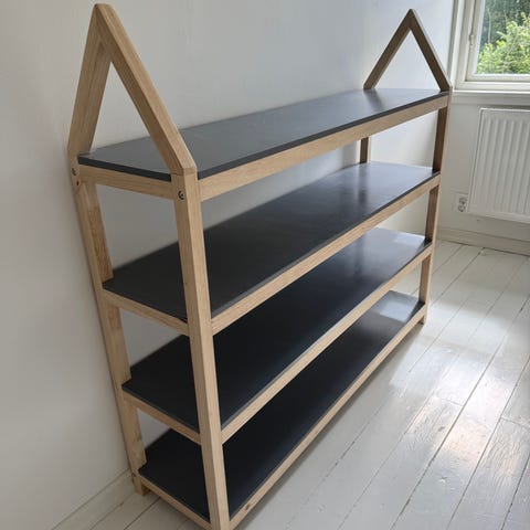 Vägghängd hylla i mattlackad ek.