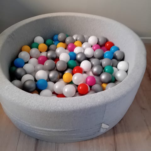 En stor kasse bollar till ett bollhav i glada färger. Vi hade dem i ett uppblåsbar barnpool.