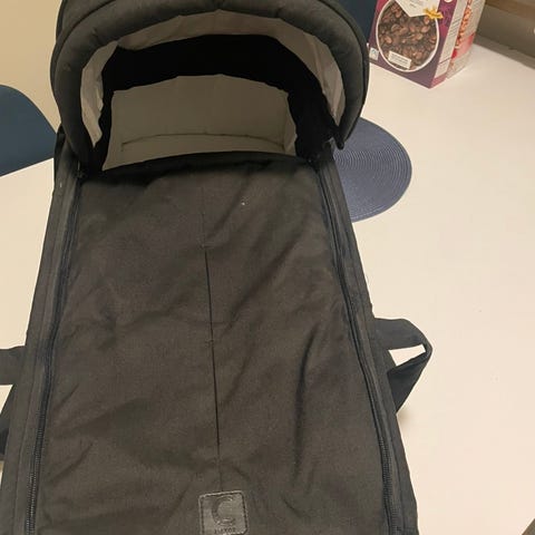 Hade den i en Emmaljunga liggdel några gånger för att lätt kunna bära upp sonen när jag gick någonstans där jag visste att man inte kunde ta med vagnen upp( se bild 3).