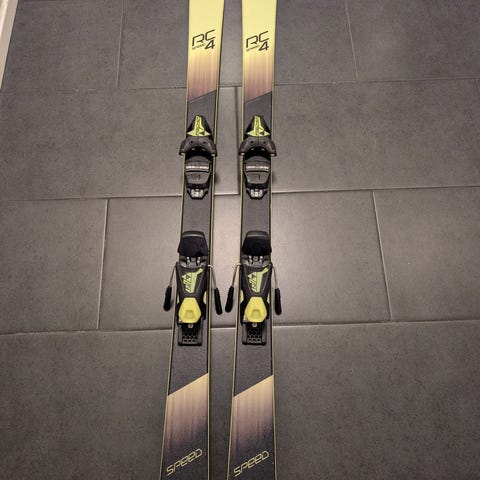 Fischer Race RC4 Jr 120cm i gott skick. Två små slagmärken på ena skidan.