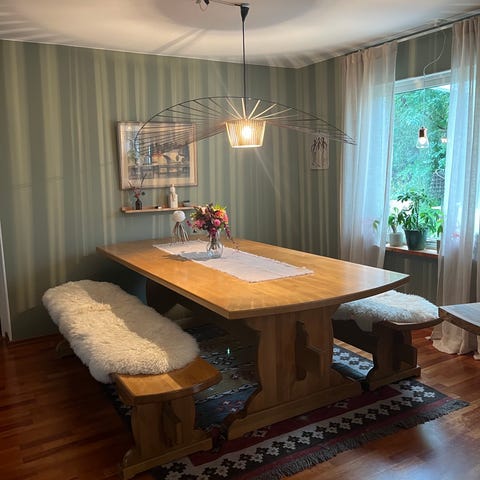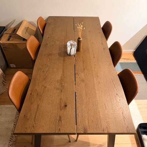 Mindre vattenmärken och ytliga repor på bordsskivan (se bilder) - går att slipa och olja.