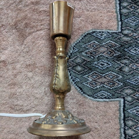 Unik Bordslampa Antikmässing. Helt ny/aldrig använd. Bordslampa Antikmässing 20x52 cm. Bordslampa med skärm i metall med antik mässingsfärg Lampan är helt mässingsfärgad. Skärmen har samma färg som foten. Lampan är tillverkad för hand & unik i sitt utförande Skärm: 20 cm i diameter