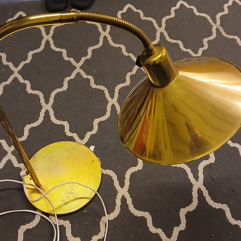 1xE27, Max 40W 1 extra lampskärm medföljer köpet. Endast avhämtning i centrala Nybro. Betalning med Swish. Budgivning undanbedes. Om annonsen finns kvar, så finns lampan kvar. Klicka på bilderna för större format.