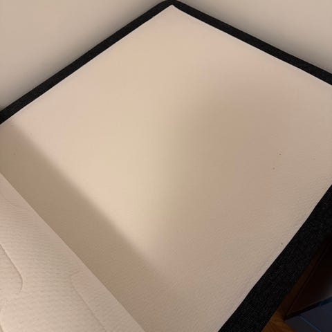 KungSängen 90 med bäddmadrass medium hård med mönstrat tyg i blå och grå toner. Madrassen är vadderad och har en kant i mörk färg. Alltid haft madrass skydd på. Mkt Fräsch utan några fläckar etc.