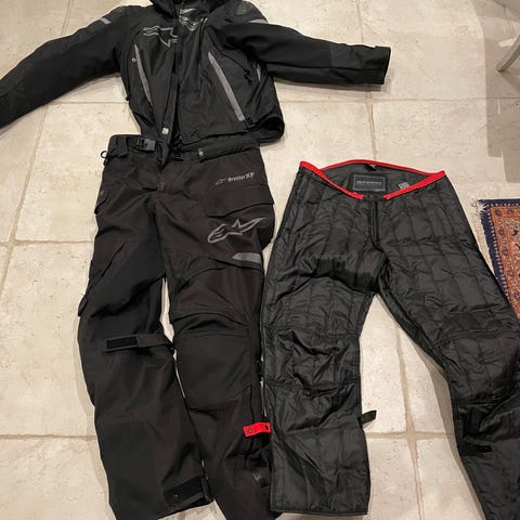 Rukka mc ställ Gore tex jacka strl 50 byxa strl 48 med avtagbart inne foder Shoei hjälm Halvarsson ryggplatta två par handskar Kevlar jeans mc stövel strl 42 allt använt ca 200 mil 5000kr för allt