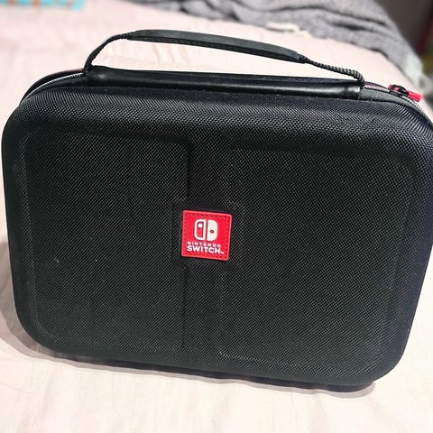 Ett skyddsfodral (Maxcarry Case) och gripcase av Skull & Co för Nintendo Switch som inkluderar justerbara handtag i blått och rött. Gripcaset går att sätt i dock och gör så att konsollen är skönare att hålla (blir som en kontroller). Max Carry Caset har plats för 10 spel, det går att ladda i caset och har ett justerbart ställ. Materialet är utformat för att skydda enheten under användning och transport. Greppen gör så att det är mycket mer bekvämt att hålla i spelkonsolen. Passar endast original Switch (ej Switch 2)