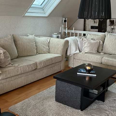 Möblerna är väl omhändertagna och kommer från ett rök- och djurfritt hem. Normalt bruksslitage kan förekomma men inga större skador. Perfekt för vardagsrum, gillestuga eller som extra sittgrupp.