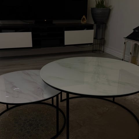 Säljer soffbord med glasskiva marmor. Bra skick.