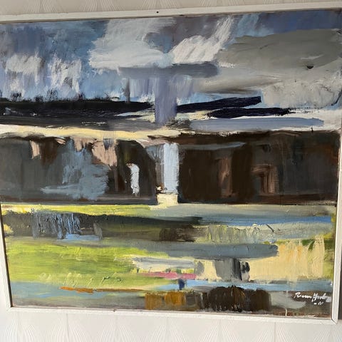 Oil painting by Jens Ulrich Petersen in the Snoremænd series. I don't have enough wall space so hoping to find a new home for it!