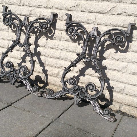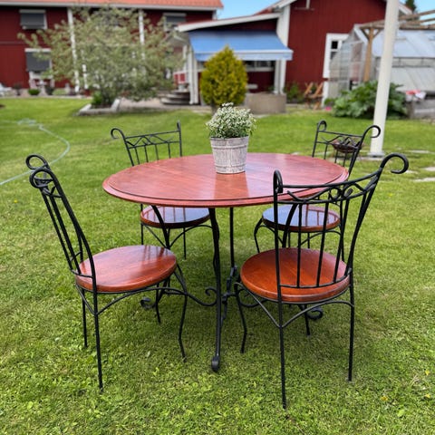 Trädgårdsmöbler i gjutjärn och tryckimpregnerade sitsar