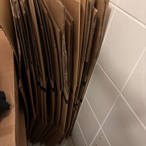 Eventuellt fler än 17. I huvudsak stora, någon enstaka medium. Blandade märken men har slängt de som var för usla och inte värdiga att förpesta någon annan flytt.