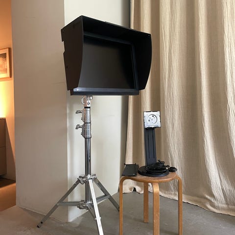 Skärm, kablar, strömkabel och solskydd.