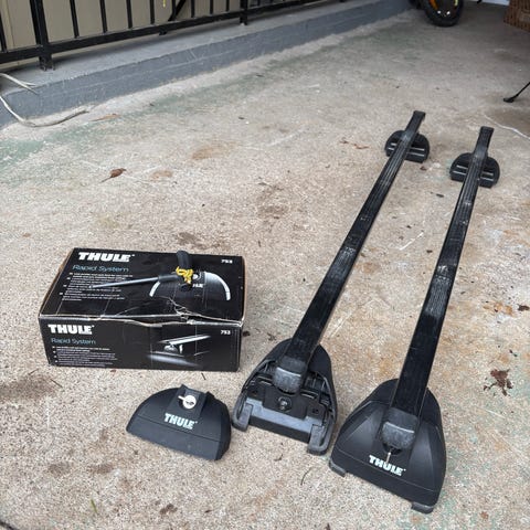 Bild 1-2 Thule Takräcke säljes enligt rubrik. Jag har haft dom monterade på Volvo V90 -24 och BMW 530 -23. Kommer med båda nycklarna och monteringsverktyg.