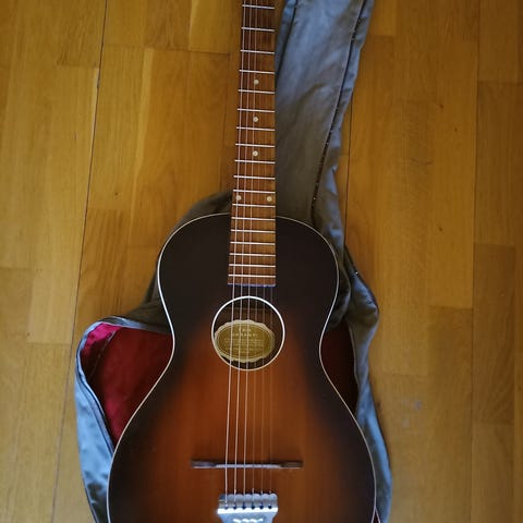 This guitar delivers a rich, resonant tone with excellent projection for its size. It’s ideal for fingerstyle, folk, and vintage blues. The neck is comfortable, and the action is playable as-is.