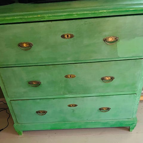 Robust byrå med låsbara lådor. Fina handtag.