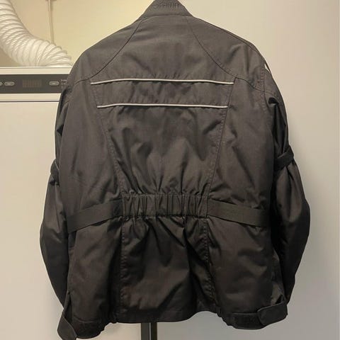 I jackan står det tyvärr ingen storlek, men jag gissar 38. I byxorna står det 42, men små i storleken - 80 cm i midjan.