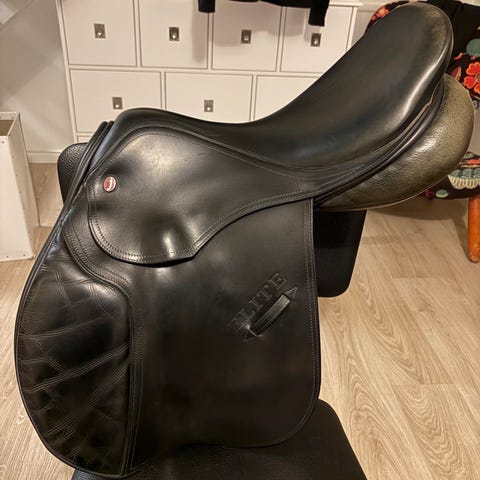 Amerigo DJ hoppsadel i brunt läder 17N + 2,5. Tillverkningsår 2004. Alldeles nyligen omstoppad. Lagning se sista bilden. Går att sy för den som vill.