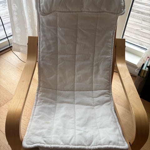 IKEA barnfåtöljer Poäng i trä med grått tyg. Passar för barn och kan användas som sittmöbler i barnrum eller lekområden. Bra skick. Finns på Ekerö men kan levereras i Bromma, Solna, Danderyd