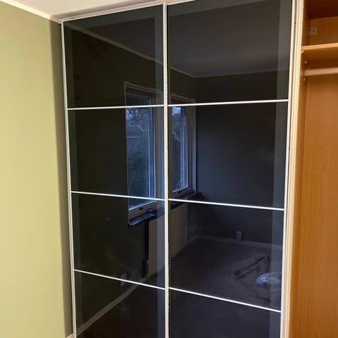 Skjutdörrpar till garderob 150*236 cm. Alla beslag m.m. medföljer förstås.
