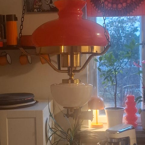Säljer en klassisk vitlackerad taklampa från Orsjo, designad av Kjell Blomberg. Perfekt för att skapa en retro atmosfär i ditt hem.