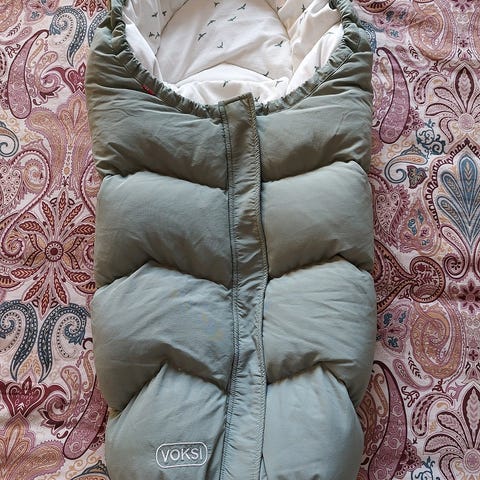 I väldigt fint skick. Använd av bebis < 1 år så aldrig med skor eller smutsiga ytterkläder. Inga skador eller tecken till slitage, det enda tecknet på användning är diskret mörkare färg på enstaka ställen i det vita innertyget (se bilder). Tror säkert att det går bort med lite Vanish eller liknande. Nytvättad enligt tvättinstruktioner med dun-tvättmedel.