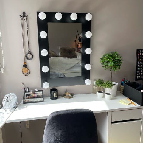 IKEA belysning två stycken. Spegeln är special beställd och passar perfekt över ett sminkbord. lamporna monteras på sidorna för förbättrad belysning.
