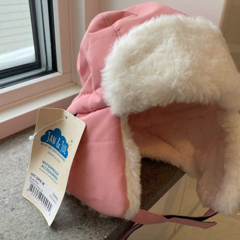Resor runt ansiktet och nacken är gjord bara i merinoull för att behålla extramjuk känsla just där. Merinoull, mohair och silke i resterande delen är till för att addera extra värme. Storlek 0-3 månader.