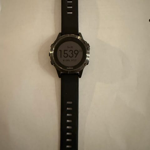 Garmin Fenix 6X GPS-klocka med gul armband. Klockan har en rund urtavla med digital och analog visning. Medföljer laddningskabel med USB-anslutning. Produkten är avsedd för användning som sport- och aktivitetsklocka. Inköpt augusti 2020
