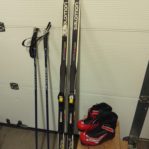Atomic längdskidor i färgerna blå och svart. Skidorna är avsedda för längdskidåkning och har traditionell design.gått vasaloppet 2 gånger.. slipade och fina inför förra vintern.
