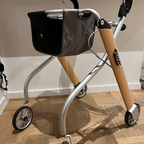 Trolla Rullvagn för inomhusbruk med svart tygkorg och silverfärgad ram. Utrustad med hjul för enkel förflyttning och ett brickbord ovanpå. Passar för att underlätta transport av föremål inom hemmet eller liknande miljöer.