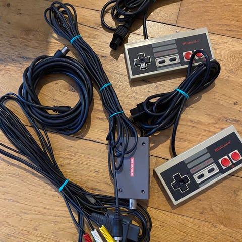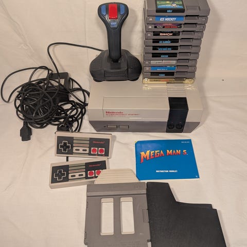 Komplett Nintendo 8-bit konsol med kablar, samt spelet Super Mario Bros.
