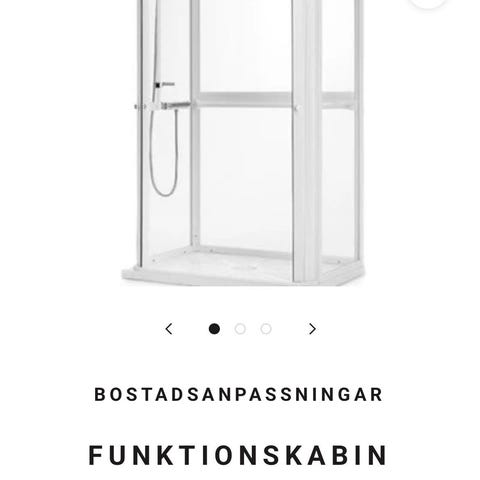 Säljer funktionsduschkabin i bra använt skick. Noggrant rengjord. Märke Kaskad. Produkten säljs idag som modellen Moveum Classic Line. Medföljer även duschblandare FM Mattsson Garda c/c 160 mm, samt dusch Hans Grohe VarioJet. Båda i bra skick. Blandare med nyligen bytt kranöverdel / kägla. Duschdraperi med fläckar. Nytt går troligen att köpa från Moveum.